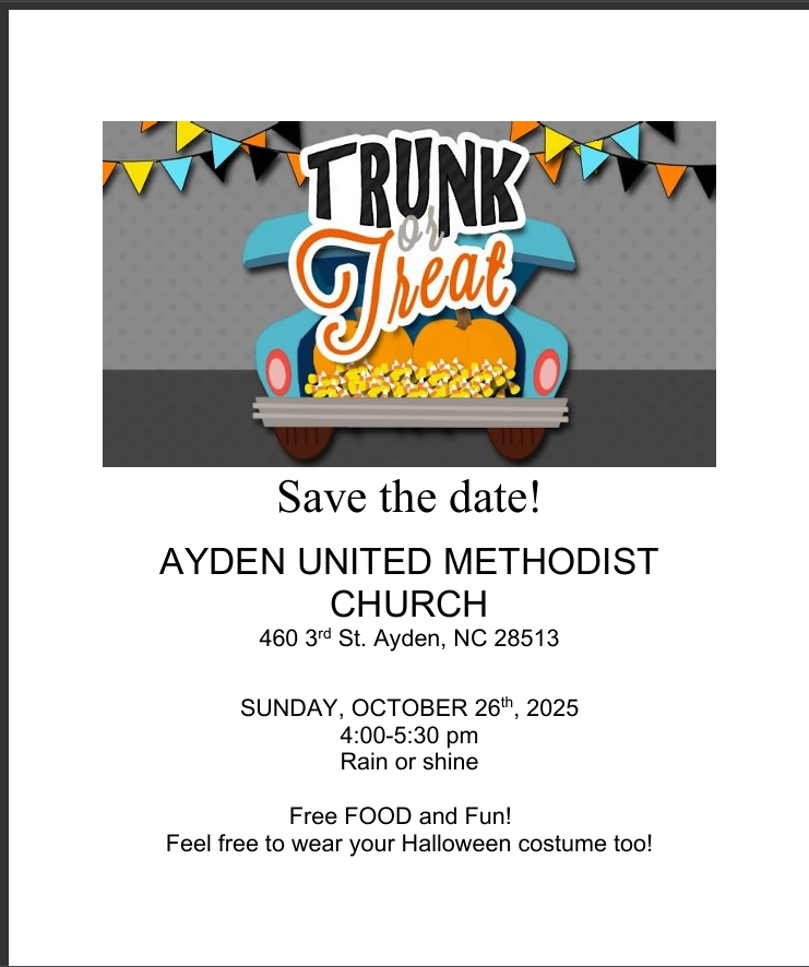 Join us for Trunk or Treat, Sunday 10/26/2025